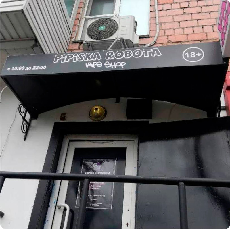 Ну вот такое название у них придумалось, объясняет Михаил. А если учесть, что это вейп-шоп, то нейминг становится особенно пикантным.
