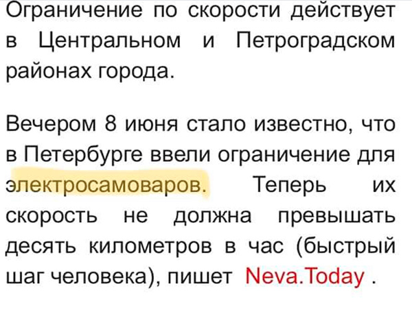 Ограничение скорости для электросамоваров?