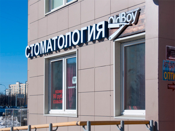 Стоматология Oldboy - это красиво, считает Александр. Особенно если вспомнить фильм "Oldboy", где зубы выдирали гвоздодером и отрезали язык бритвой - а вон, кстати, и бритва там тоже нарисована. Добро пожаловать зубки лечить!