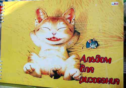 Альбомчик, кстати, не простой, а с загадкой. Ребенок должен угадать, что именно эта мышка только что сделала котику...
