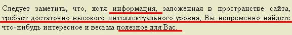 Что на это сказать? Я бы, например, на такой сайт зайти не рискнул. Побоялся бы, что меня разорвет вдребезги пополам заложенной на сайт интеллектуальной мощью...