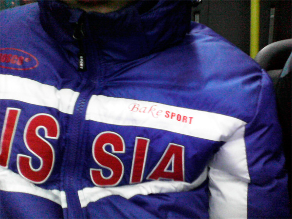 Ну и те же прекрасные люди с двойкой по английскому хотели сделать курточку "Байк-спорт" (bike sport). А получился у них - сдобоспорт. Жиртрест, короче говоря.