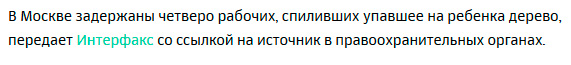 Честно, не понял, что не так с РБК. Ну задержаны люди, спилившие дерево, которое упало на ребёнка? Или "спиливших упавшее" плохо звучит?