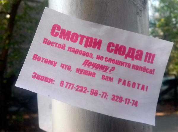 Их, видать, вот по таким объявлениям набирают, предполагает Филя.