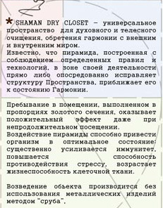 Все-таки приятно встретить настоящих креативщиков, радуется Анна. Ведь как делаются практически все наружные туалеты типа "сортир"? Кабинка, очко - и гуляй, Вася. В смысле, развлекайся... Однако есть люди на Руси, которым дорого просвещение, и они разработали совершенно уникальное сооружение под названием Shaman Dry Closet. Это тоже вроде как сортир, но духовный, облагораживающий! Построен он в виде пирамиды, причем по всем канонам Золотого сечения. И в результате у вас получается не сортир, а универсальное пространство для духовного и телесного очищения, обретения гармонии с внешним и внутренним миром! Более того, вещество, для получения которого и предназначен Shaman Dry Closet, проходит определенное фазовое превращение и приобретает высокую биологическую активность. Иначе говоря, если удобрять этим делом клубнику - она вырастет размером с арбуз!