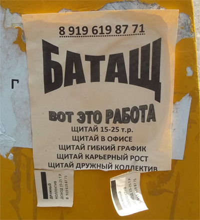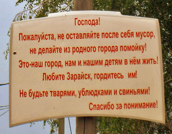 Эффектное по силе убеждения объявление, считает Евгений. Правда, не хватает еще фразы "Вашу мать".