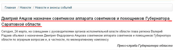 "советник Губернатора помощников и мочалок командир!" Да ещё и Саратовкой области...Там видно с украинским коллегоВ встреча намечена.