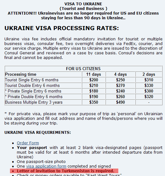 Для получения украинской визы теперь обязательно приглашение в Туркменистан, удивляется Анна.