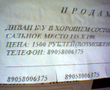В Екатеринбурге, зазывает Сергей, продается хороший подержанный диван. Место, правда, немного сальное, отполировали, но зато большое.