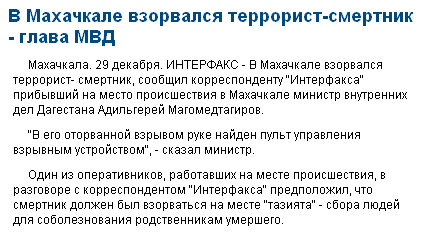 Жуткие дела творятся в Махачкале, ужасается Виталий Леонтьев. Местного главу МВД зомбировали до такой степени, что он зажал в руке пульт управления взрывным устройством и отправился на место тазиата.