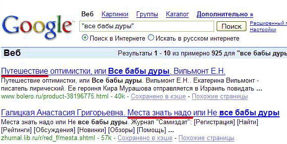 Поиск на Google, радуется Vladek, не страдает мужским шовинизмом. В результате уже на втором месте представлена альтернативная точка зрения!
