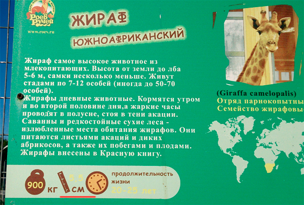 Что-то мелковат нынче жираф пошел, вздыхает Алексей. Всего пять с половиной сантиметров. Карликовый, видать. Ну, хоть весит 900 кило - значит, хорошо кормят бедолагу.