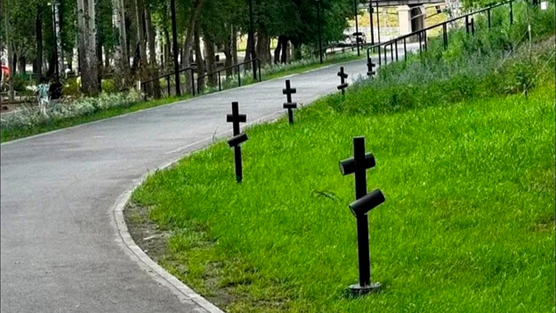 Это не могилы, объясняет Андрей, это новые светильники в парке Маяковского в Екатеринбурге. Большого ума люди это делали, явно большого ума.