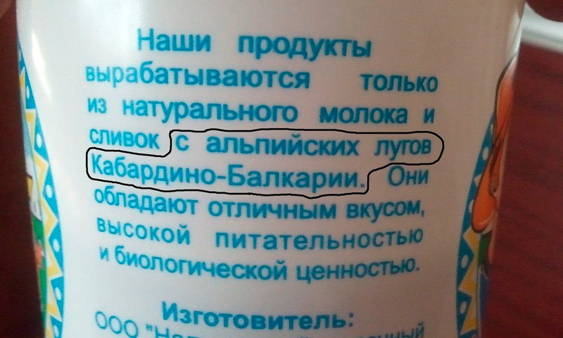 А запивать шаурму мы будем молочком, которое вырабатывается на альпийских лугах Кабардино-Балкарии.