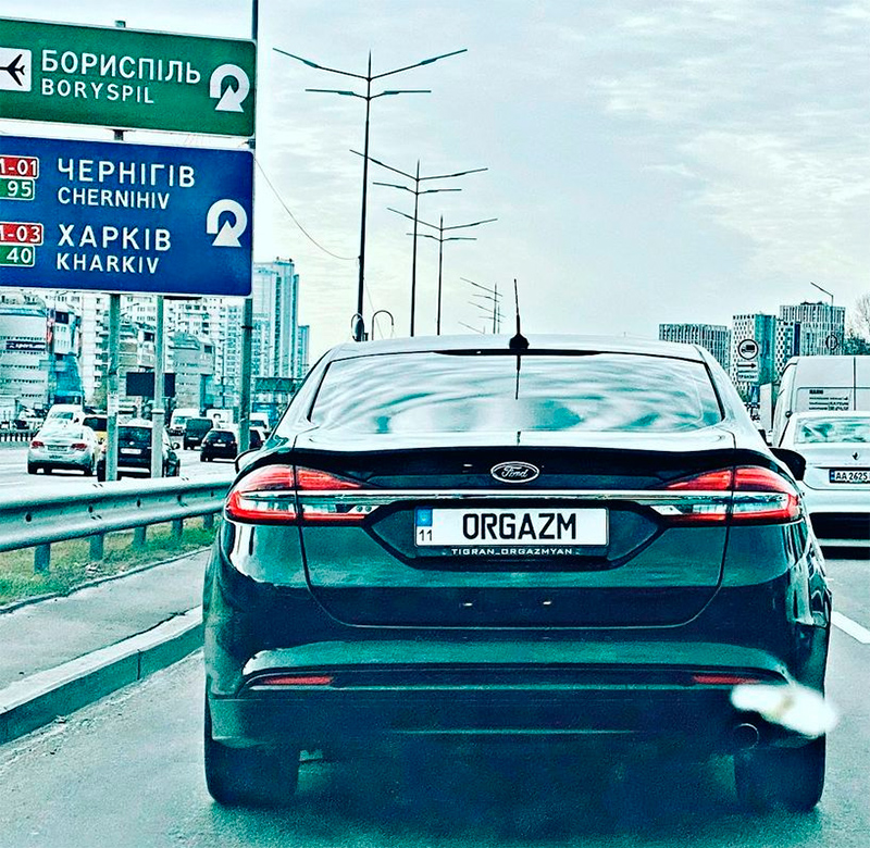 Алекс мучительно пытается понять, что именно владелец этого автомобиля пытается сообщить миру. Тигран Оргазмян. Номер с надписью "Оргазм". И что? Тигран умеет оргазмировать? Ну, для мужиков это вроде совсем не фокус. Или, может, он хочет сказать, что научился достигать оргазма буквально за несколько секунд? Так вроде тут нечем гордиться. С другой стороны, может, все наоборот - Тигран ищет оргазма и не может его найти. В общем, непонятно. Мы считаем, что Тигран должен выпустить какое-то коммюнике, разъясняющее его позицию.