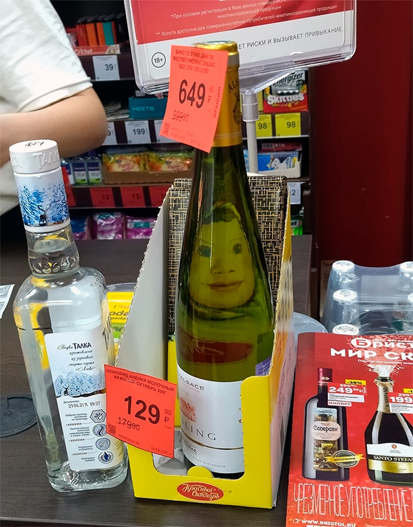 "Алёнка" позади бутылки рислинга стала смотреться очень интересно и необычно, радуется Гена Крокодил.