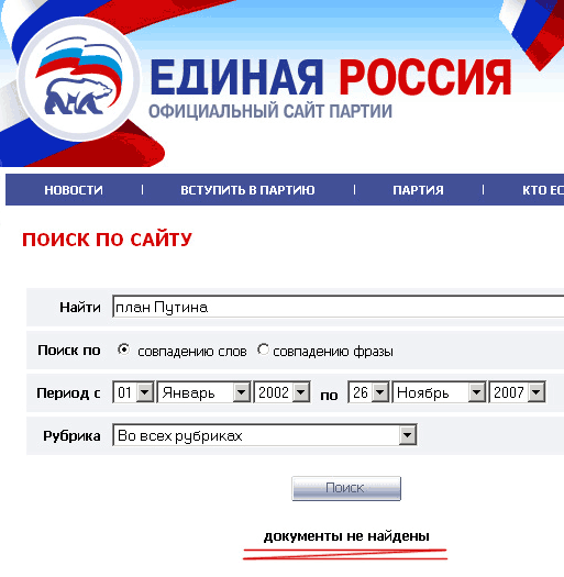 Я зашел на сайт ЕР - http://www.edinros.ru/search.html и на запрос план Путина получил 1306 документов!