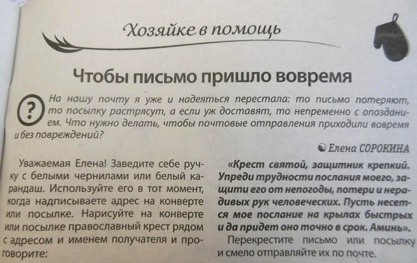 Почте России на заметку, считает Andy. Если на письме стоит крестик, то его уже можно не отправлять обычной почтой. И так дойдет. Святым духом.