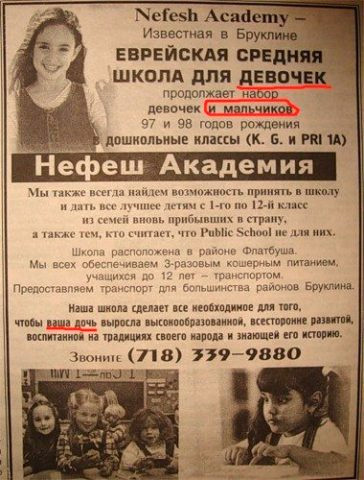 Что касается еврейской школы для девочек, то вполне может быть, что в дошкольные группы принимают и мальчиков, это просто дошкольная подготовка.