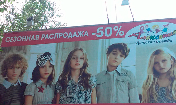 Интересно, удивляется Евгений, что же такое делали с этими детишками, чтобы они на фотографии стояли с настолько кислыми лицами? Может, фотограф взял в заложники их родителей? А-а-а-а, они просто увидели эту одежду, которую продают в два раза дешевле! Тогда все понятно.