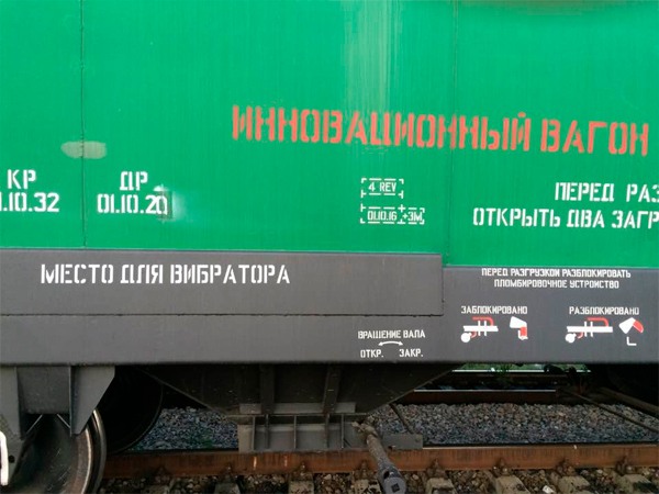 Это вагон-зерновоз. В чём инновация не знаю, не мой уровень допуска, видимо что-то в конструкции.
