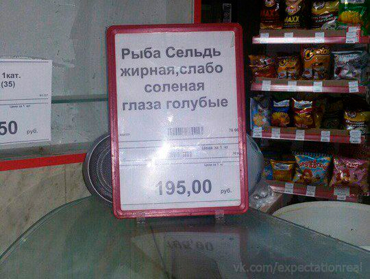 Гена Крокодил прислал невероятно трогательное объявление. Я сразу представил себе: лежит такая селедка - жирная-жирная, при этом слабосоленая. И смотрит на тебя пронзительными голубыми глазами! Ну как не купить-то такую, а?