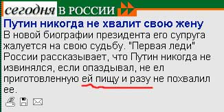 С другой стороны, чего уж тут странного? Бывалоча, напаришься за весь день на кухне, так глаза бы мои на эту пищу и не смотрели. Так что ничего странного в том, что Путин, упарившись готовить для жены, не ел приготовленную ей пищу. Потом, может, он во время готовки кусочничал, правильно?