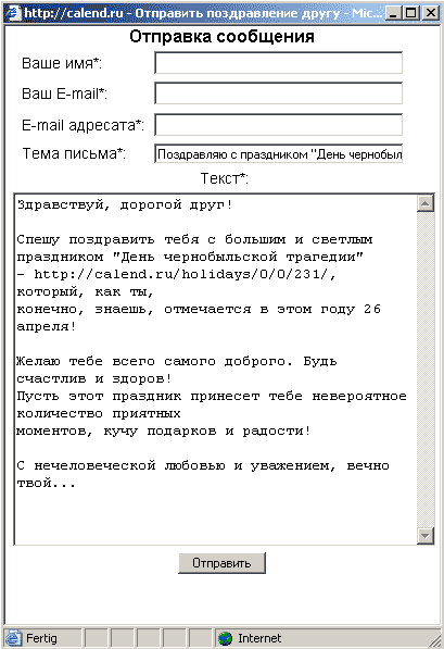 На сайте Calend.ru, замечает Настасья, есть сервис, позволяющий автоматически сгенерировать поздравительное письмо. Иногда это выглядит очень своеобразно: