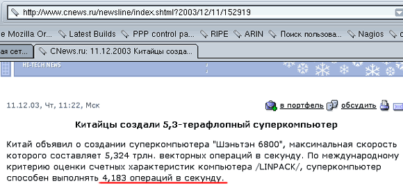 Ну, что китайцы построили супертормозной суперкомпьютер, способный выполнять всего 4 с чем-то операции в секунду (ну, скажем, за секунду вычислить, сколько будет 2х2, не больше), считает Alexander Dilevsky, - это понятно. Но почему на CNews публикуют подобные новости - вот это уже точно трудно объяснить.
