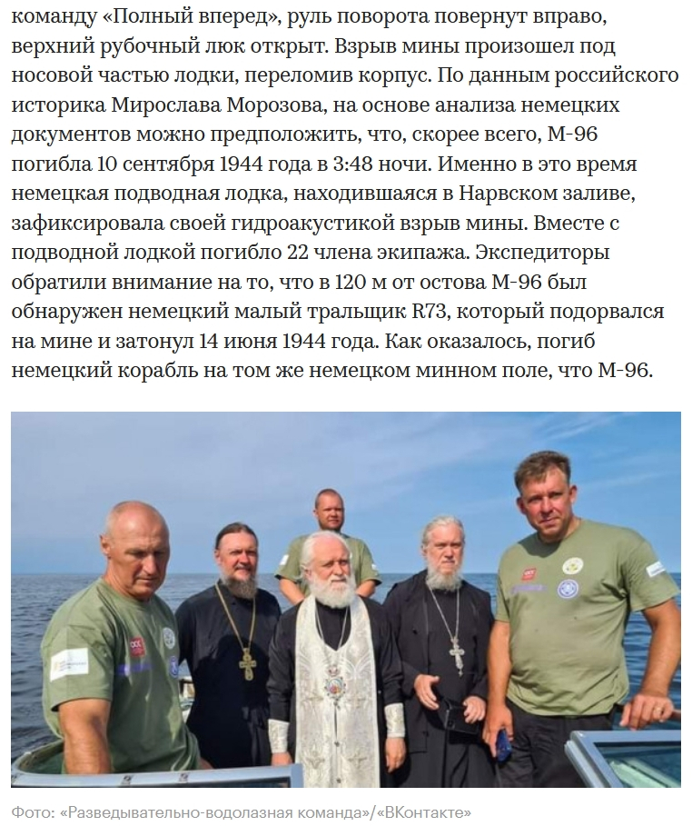 Ну "боевые пловцы" (на самом деле нет, это поисковики) нашли на дне погибшую подлодку, священники отслужили за упокой. В заметке дана историческая справка. Так что иллюстрация уместна.