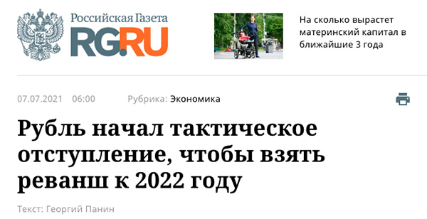 В "Российской газете", вздыхает Гена Крокодил, такие светлые оптимисты. Рубль с 1998 года "тактически отступает", а точнее, обваливается, а они все реванша ждут, реваншисты чертовы.