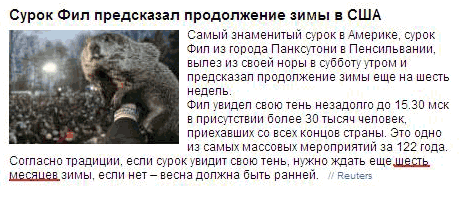 "Газета.ру", замечает Дмитрий, спутала сурка Фила с семью тощими и семью тучными коровами.