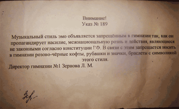 Alех_ восхищается директором гимназии № 1 Зерновой Л. М. Как она лихо одним росчерком пера уничтожила целое направление в молодежной культуре.