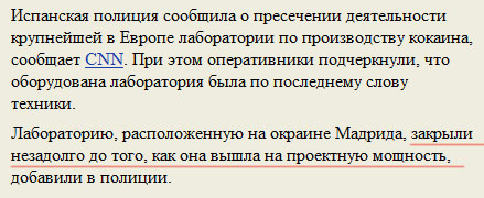 Крупнейшая в Европе лаборатория по производству кокаина настолько крута, заметил Иннокентий, что она вышла на проектную мощность уже после того, как ее закрыла полиция. Судя по всему, полиция так увлеклась закрытием, что забыла обо всем на свете.