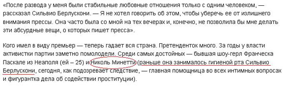 Впрочем, вздыхает Никита, ничего удивительного. С помощницей по интимным делам с фамилией Минетти, которая раньше к тому же занималась гигиеной полости его рта, у Берлускони другого выхода-то и нет!