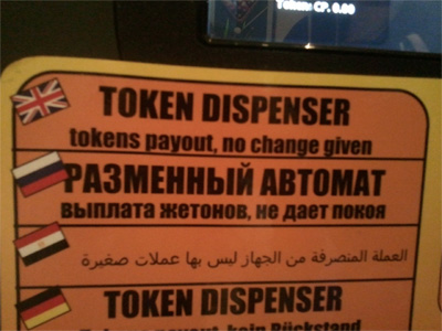 Юлия пытается понять, каким образом разменный автомат не дает покоя. Я так думаю, что он по ночам звонит постояльцам отеля и говорит: "Приходи поменять, как раз очереди никакой нет".