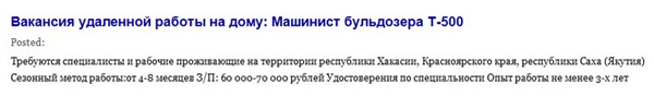 Новые времена - новые технологии, считает Лора. Машинист бульдозера на удаленную работу - это сильно! Впрочем, может, они просто ищут спеца по игре в "Танки"?