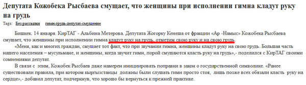 Допекло Кожобека, вздыхает Дмитрий, вот просто допекло. Кладут, понимаешь, суки, руку на грудь. А Кожобек - смущается. Не может держать руку на своей груди - обязательно тянется к женской.