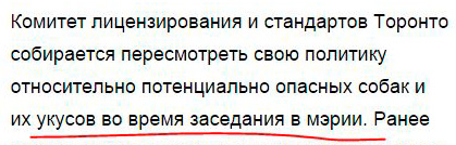 В Торонто - полный беспредел, пугается Константин. Собаки кусаются прямо во время заседания в мэрии. Хотя, кстати, не очень понятно, почему в Торонто собаки заседают в мэрии.