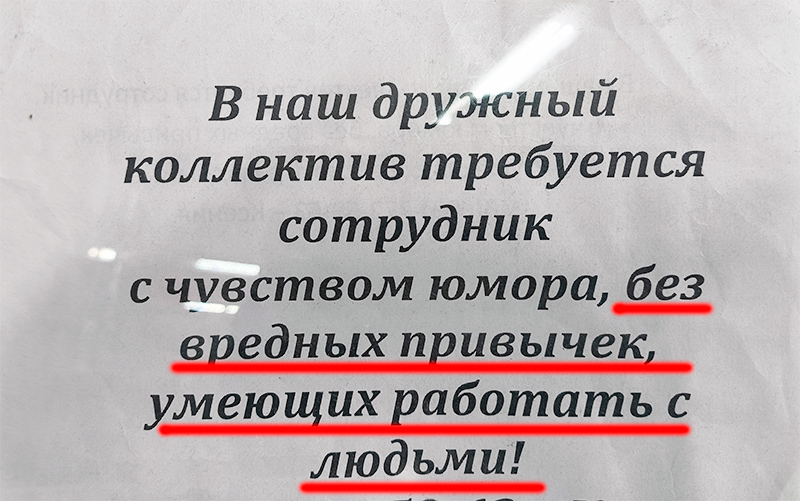 Глеб пытается понять, где же найти человека без вредных привычек, умеющих работать с людьми. Ведь если у человека есть вредные привычки, значит, эти привычки умеют работать с людьми. Так что они ставят нереальные задачи!