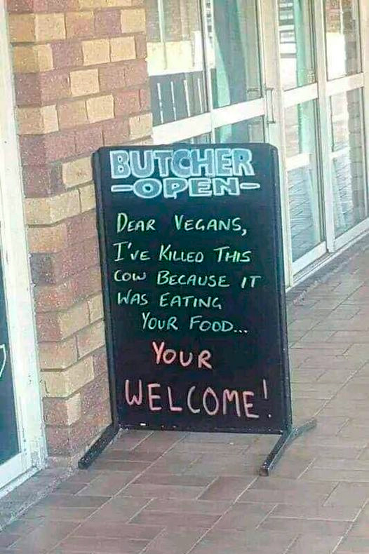 Мясник так перевозбудился от своего мясного креатива, что даже забыл, как пишется "You are welcome".
