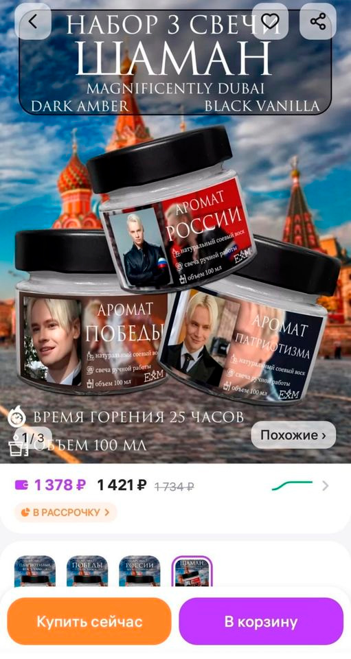 Набор ароматических свечей "Шаман", рекламирует Палиндромодыр. Воняют и Шаманом, и патриотизмом. Духовитые - зашатаешься!