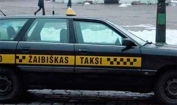 На такси написано: "Жайбишкас такси". Ударение на первую гласную. Литовский сервис в Каунасе. Переводится как: "молниеносное такси". А так, да, кто не знает правило чтения, прочитает именно так.