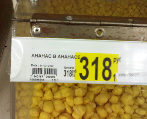 Если деньги есть, предлагает Олег, можно попробовать редкостный деликатес - ананас в ананасе. Только в "Ашане", остерегайтесь подделок!