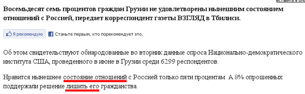 В деловой газете "Взгляд", рассказал Карл, как обычно, по-деловому курят что-то очень ядреное. Лишить гражданства состояние отношений - вот прям очень хочется такой же травы попробовать.