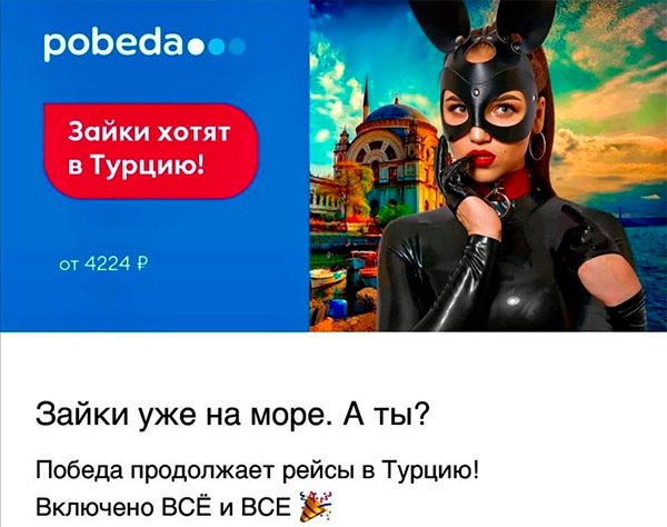 Так что собирайтесь вместе с "Победой". Только BDSM-ный прикид не забудьте, а то заек вам "Победа" уже в билет включила.