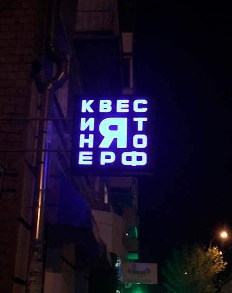 Прям даже интересно: что именно дизайнер хотел сказать данной вывеской в стиле Рокк-ебол? Ну, кроме очевидного диагноза "Квестофрения"?