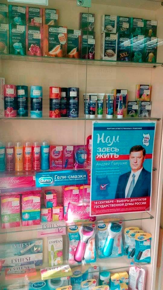 С депутатом хорошо получилось. Подозреваю, что сотрудники аптеки решили приколоться. Наверняка же спустили сверху плакат и сказать "штоп повесили". Ну они и повесили