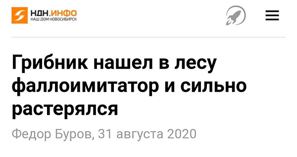 Также нам интересно, что скажет грибник, когда у него жена обнаружит этот фаллоимитатор. "Да я, Маш, - скажет он, - просто за грибочками ходил и сильно растерялся".