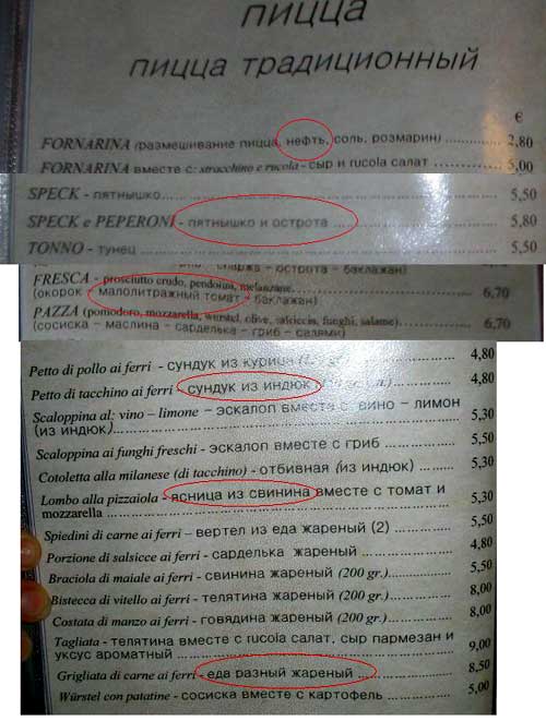 Яблочка как-то решила пообедать в Италии и неосмотрительно заказала меню на русском. Кушать сразу как-то расхотелось...